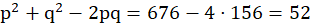 Należy obliczyć długość przekątnych rombu, którego pole jest równe 156 a wysokość 12.
