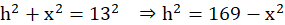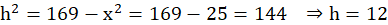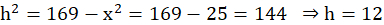 Stosujemy twierdzenie Pitagorasa do trójkąta utworzonego z przekątnej o długości 13, krótszej podstawy i wysokości: