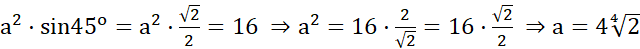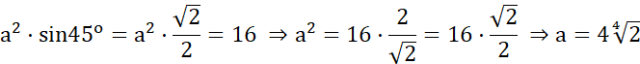 Należy obliczyć długość boku rombu, wiedząc, że jego pole wynosi 16 oraz kąt rozwarty jest trzy razy większą niż kąt ostry rombu.