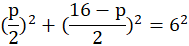 Należy obliczyć pole rombu, wiedząc, że jego bok ma 6 cm, zaś suma przekątnych wynosi 16 cm.