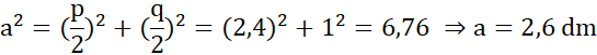 Wiadomo, że przekątne w rombie przecinają się pod kątem prostym i dzielą się na połowy. Skorzystamy więc z twierdzenia Pitagorasa, by obliczyć bok rombu: