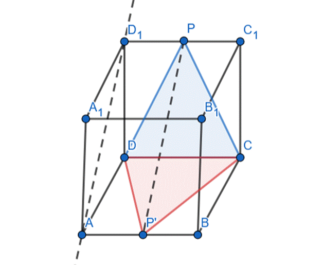 Narysuj obraz w tym rzucie trójkąta DCP, gdzie punkt P jest środkiem odcinka