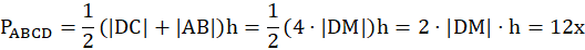 Dany jest równoległobok ABCD oraz punkt M będący środkiem DC. Dodatkowo P to punkt przecięcia AM i DB. Należy udowodnić, że pole czworokąta ABCP jest dwukrotnie większe od pola czworokąta APCD.