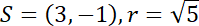 Odczytaj współrzędne środka okręgu i długość promienia: