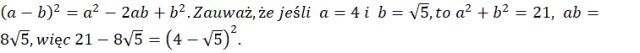 W tym zadaniu musisz przedstawić podane wyrażenie jako kwadrat sumy lub kwadrat różnicy.