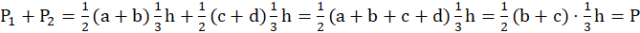 Dwie proste równoległe do podstaw trapezu podzieliły jego ramiona na trzy odcinki równej długości. Pola powstałych trapezów zostały oznaczone jako