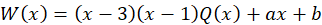 Zapisz resztę w postaci odpowiedniego wielomianu (stopień jest co najwyżej równy 1, więc jest to funkcja liniowa) i utwórz układ równań, z których wyznacz wartości współczynników a i b.