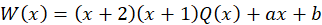 Zapisz resztę w postaci odpowiedniego wielomianu (stopień jest co najwyżej równy 1, więc jest to funkcja liniowa) i utwórz układ równań, z których wyznacz wartości współczynników a i b.