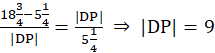 Wierzchołek A to kąt ostry rombu ABCD. Poprowadzono okrąg przez wierzchołki A, B, D, który podzielił dłuższą przekątną na odcinki