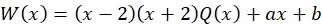 Zapisz resztę w postaci odpowiedniego wielomianu (stopień jest co najwyżej równy 1, więc jest to funkcja liniowa) i utwórz układ równań, z których wyznacz wartości współczynników a i b.