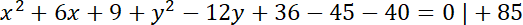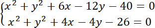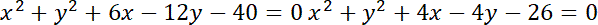 Są dwa punkty wspólne, bo okręgi się przecinają. Oblicz współrzędne tych punktów: