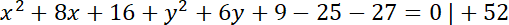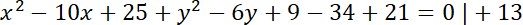 Jest jeden punkt wspólny, bo okręgi są styczne zewnętrznie. Oblicz współrzędne tego punktu.
