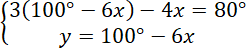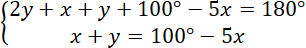 Ułóż układ równań, wiedząc że suma kątów w trójkącie wynosi