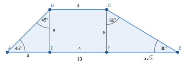 Zauważ, że oba powstałe trójkąty są trójkątami szczególnymi, jeden o kątach a drugi o kątach . Skorzystaj ich własności do rozwiązania zadania.