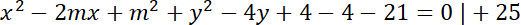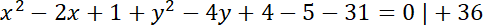 Aby rozwiązać zadanie najpierw zapiszemy równania okręgów w postaci kanonicznej: