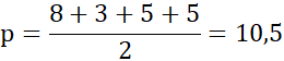 Na czworokącie ABCD o bokach długości |AB| = 8, |BC| = 3, |AD| = |CD| = 5 można opisać okrąg. Należy obliczyć pole danego czworokąta.