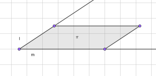 Stwórz rysunek pomocniczy, korzystając z podanych informacji. Narysuj proste m i l na jednej płaszczyźnie π: