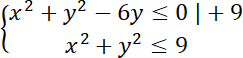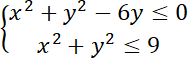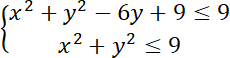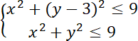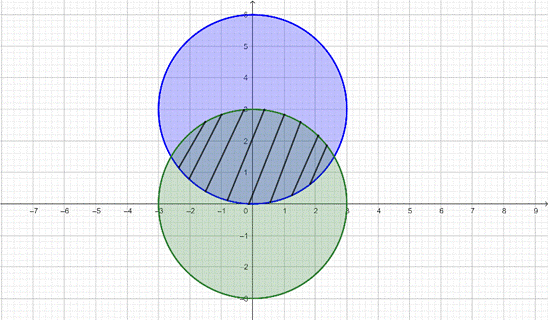 Zbiór punktów spełniających pierwszą nierówność to koło o środku w punkcie
