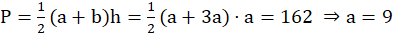 Należy obliczyć odcinki |AB| i |DC| (podstawy trapezu) wiedząc, że krótsza podstawa i wysokość DE są równe oraz DE dzieli podstawę AB w stosunku 1:2.