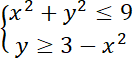 Zbiór punktów spełniających drugą nierówność to obszar ponad parabolą o wierzchołku w punkcie