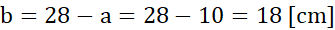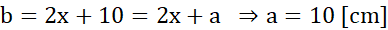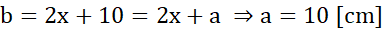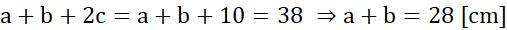 Należy obliczyć długość podstawy trapezu równoramiennego. Wiadomo, że jego ramię ma długość 5 cm, obwód 38 cm, a wysokość poprowadzona z kąta rozwartego podzieliła dłuższą podstawę na dwa odcinki, z których jeden jest dłuższy od drugiego o 10 cm.