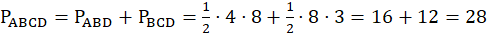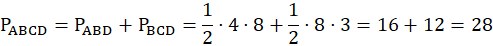Należy obliczyć pole trapezu ABCD. Wiadomo, że dłuższa podstawa wynosi