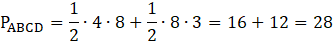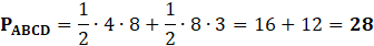Pole trapezu oblicz jako suma dwóch trójkątów.