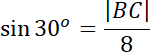 Wykonaj rysunek pomocniczy. Zauważ, że trójkąt ABC jest prostokątny. Skorzystaj ze wzoru sinus w powstałym trójkącie. Zapisz to za pomocą równania i wyznacz z niego długość szukanego odcinka BC.