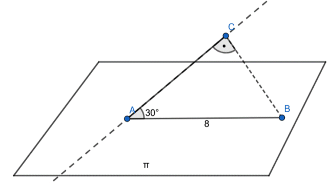 przebija płaszczyznę w punkcie A, punkt B należy do prostej