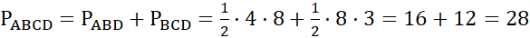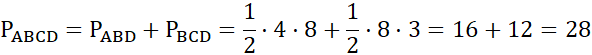 Należy obliczyć pole trapezu ABCD. Wiadomo, że dłuższa podstawa wynosi