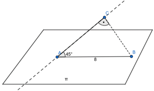 przebija płaszczyznę w punkcie A, punkt B należy do prostej