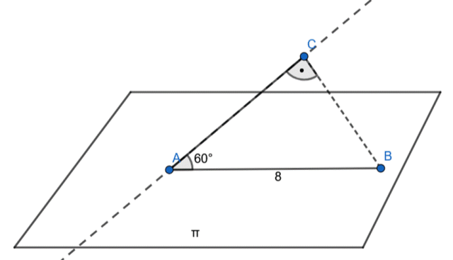 przebija płaszczyznę w punkcie A, punkt B należy do prostej