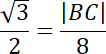 Wykonaj rysunek pomocniczy. Zauważ, że trójkąt ABC jest prostokątny. Skorzystaj ze wzoru sinus w powstałym trójkącie. Zapisz to za pomocą równania i wyznacz z niego długość szukanego odcinka BC.
