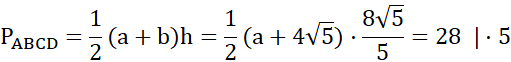 Należy obliczyć długość krótszej podstawy trapezu. Wiadomo, że dłuższa podstawa wynosi
