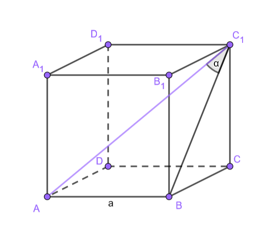 Musisz znaleźć rzut prostokątny odcinka AC1 na ścianę BCC1B1. Zauważ, że jest nim odcinek BC1, który jest jednocześnie przekątną ściany BCC1B1. Oblicz wartość tangensa α z odpowiednich zależności miar trygonometrycznych w trójkącie ABC1.