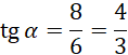 Zauważ, że trójkąt ABC jest prostokątny. Wykorzystaj zależności miar trygonometrycznych w trójkącie prostokątnym do obliczenia kąta α: