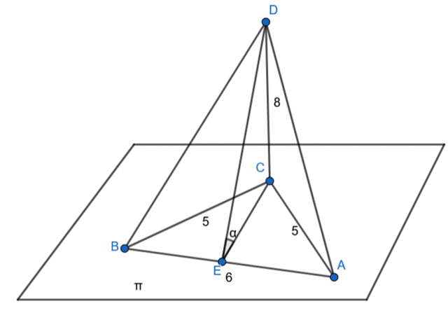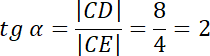 Wykonaj rysunek pomocniczy. Zauważ, że trójkąt ACE jest prostokątny. Skorzystaj z twierdzenia Pitagorasa, aby obliczyć długość przeciwprostokątnej CE, a następnie ze wzoru tangens i go oblicz dla trójkąta CDE.
