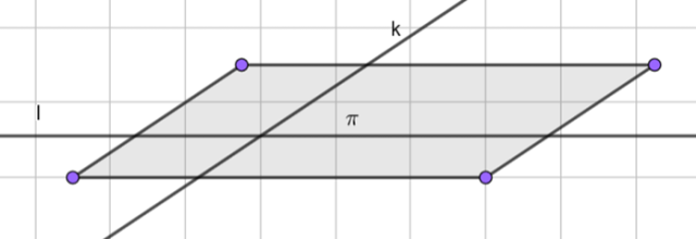 Stwórz rysunek pomocniczy, korzystając z podanych informacji. Płaszczyznę π oraz zawartą w niej prostą l: