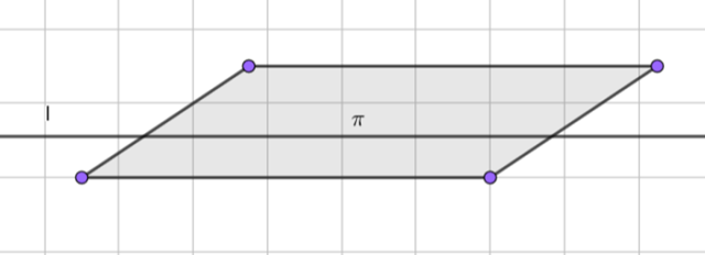 Stwórz rysunek pomocniczy, korzystając z podanych informacji. Płaszczyznę π oraz zawartą w niej prostą l: