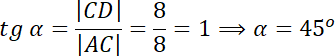 Wykonaj rysunek pomocniczy. Zauważ, że trójkąt ABC jest prostokątny. Skorzystaj z twierdzenia Pitagorasa, aby obliczyć długość odcinka AC. Następnie oblicz tangens w trójkącie ACD i odczytaj z tablic trygonometrycznych miarę kata, dla której tangens ma otrzymaną wartość.