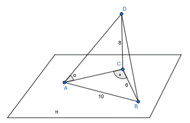 , a odcinek CD jest prostopadły do płaszczyzny i ma długość 8.