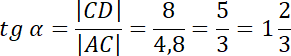 Wykonaj rysunek pomocniczy. Oblicz długość wysokości CE korzystając ze wzoru na pole trójkąta. Następnie oblicz tangens w trójkącie CDE.