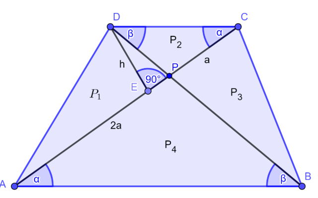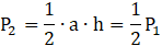 Dwa trójkąty mają te same pola (mają taką samą podstawę i wysokość):