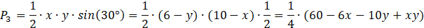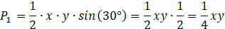 Oblicz pola poszczególnych części czworokąta, korzystając z wzoru: