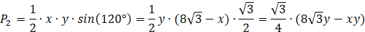 W tym zadaniu musisz policzyć pole czworokąta na podstawie jego przekątnych i kąta między nimi.