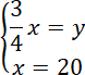 Pierwsze równanie układu powstało ze zdania: jedna z szukanych liczb jest o 25%mniejsza od drugiej liczby.