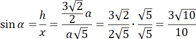 Na koniec skorzystaj z funkcji trygonometrycznych w powstałym trójkącie prostokątnym i wyznacz sinus kąta między przekątną ściany bocznej a przekątną podstawy, wychodzącymi z tego samego wierzchołka.