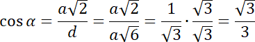 Na koniec skorzystaj z funkcji trygonometrycznych w powstałym trójkącie prostokątnym i wyznacz cosinus kąta nachylenia przekątnej graniastosłupa do płaszczyzny podstawy.