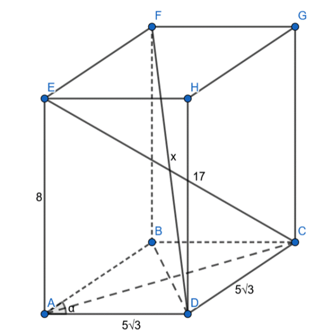 . Wiedząc, że wysokość graniastosłupa jest równa 8 cm, a dłuższa przekątna graniastosłupa ma 17 cm długości.