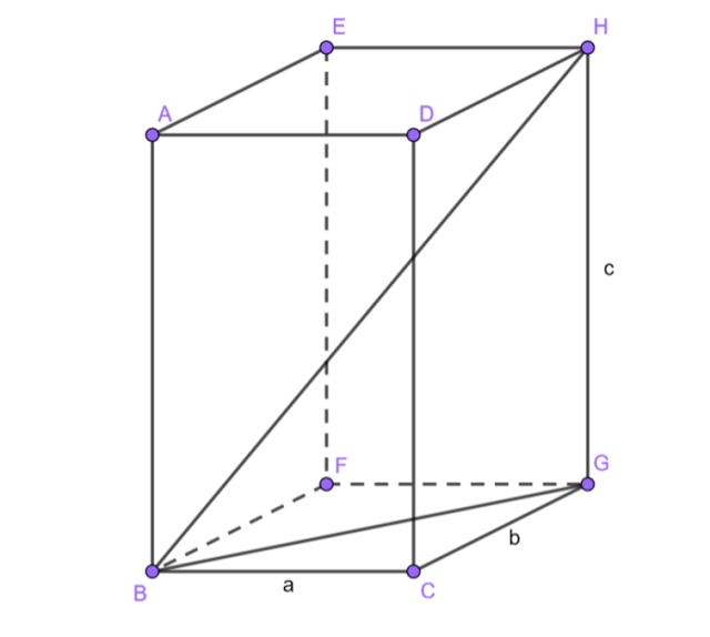 Zauważ, że przekątna prostopadłościanu tworzy z przekątną podstawy trójkąt prostokątny. Oblicz długość przekątnej BG, korzystając z twierdzenia Pitagorasa: